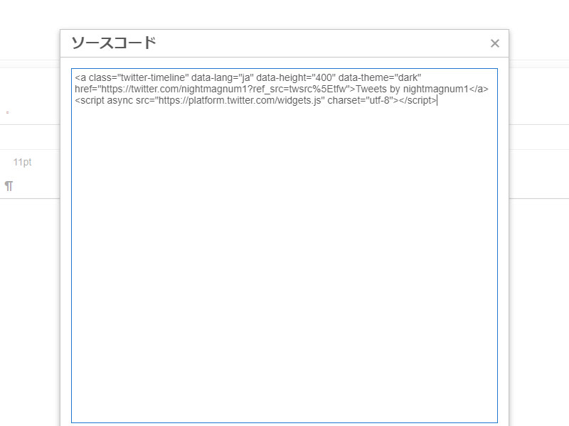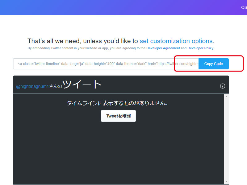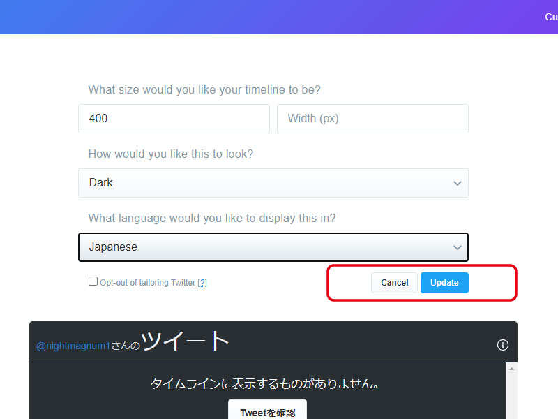 The URL of the Twitter profile whose timeline you want to display in "Enter a Twitter URL" (https://twitter.com/~username~)Please enter.